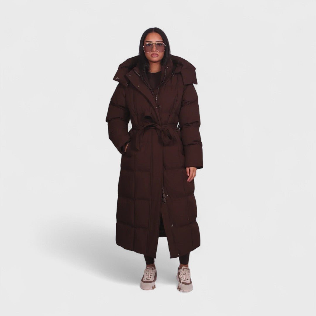 Carmen - Długi puchowy płaszcz z paskiem